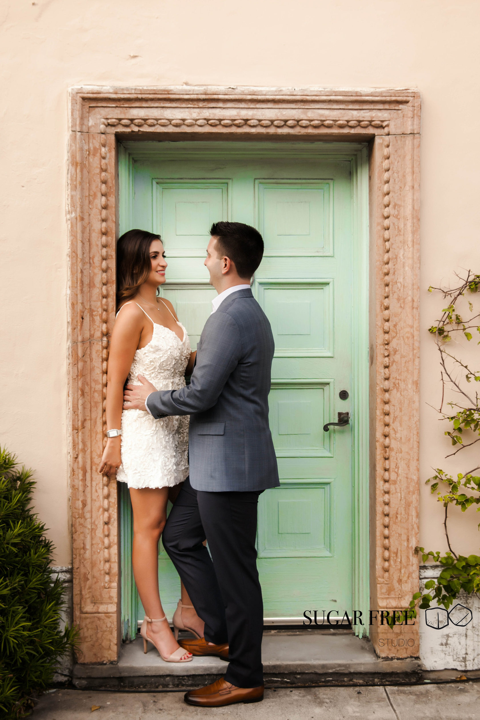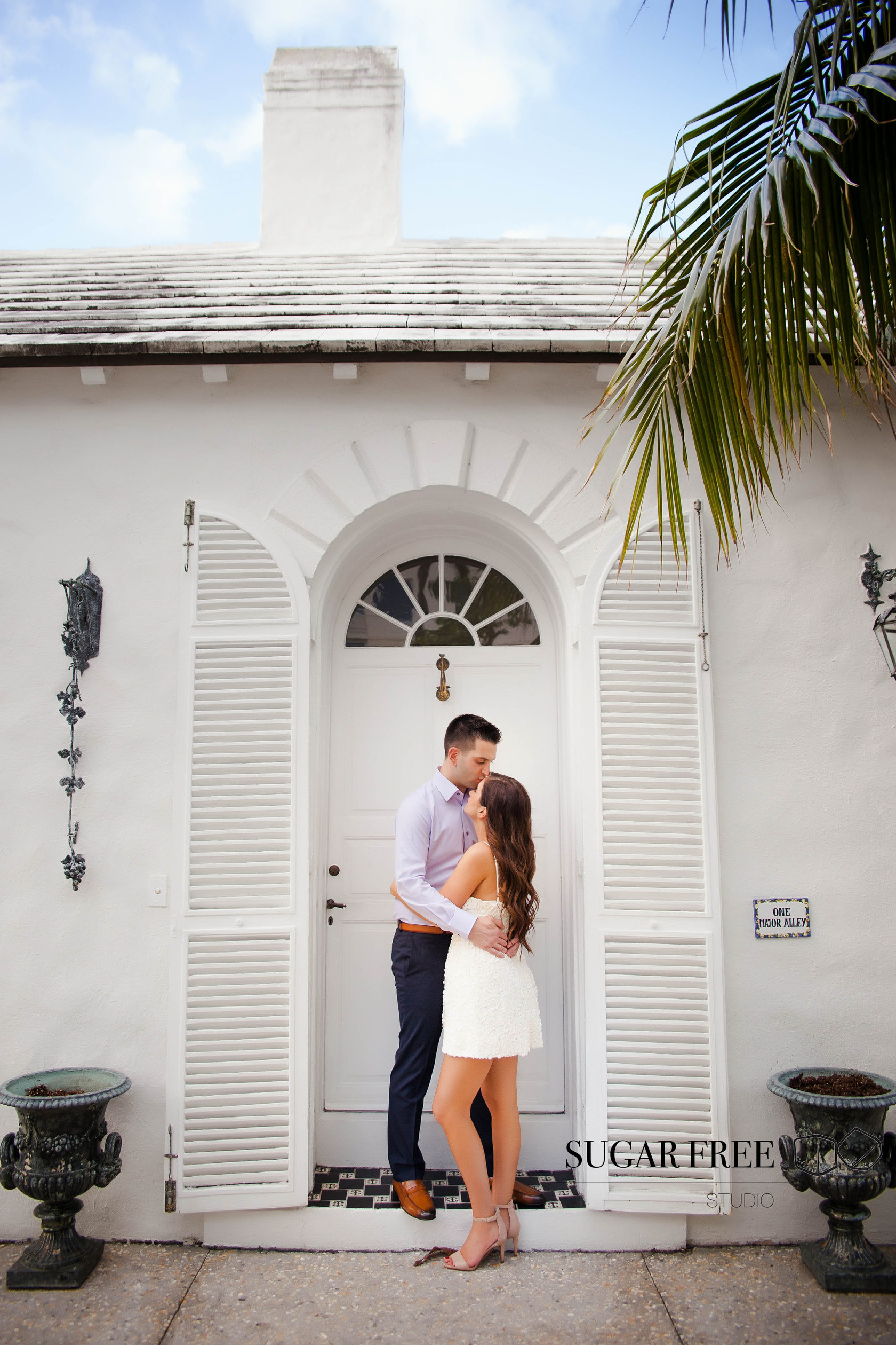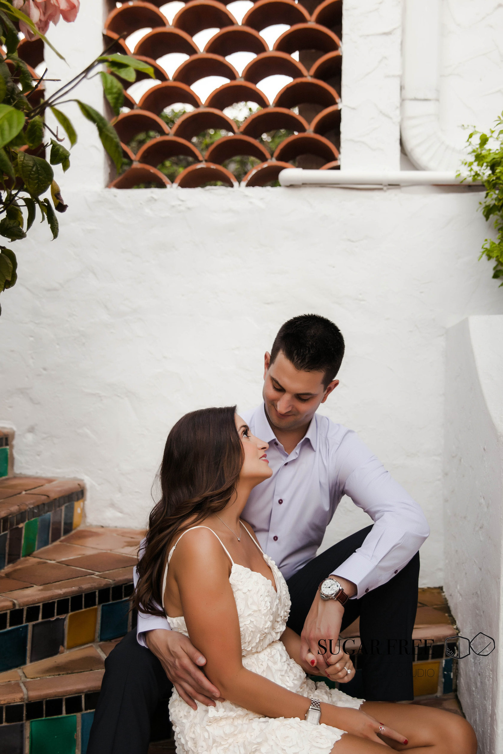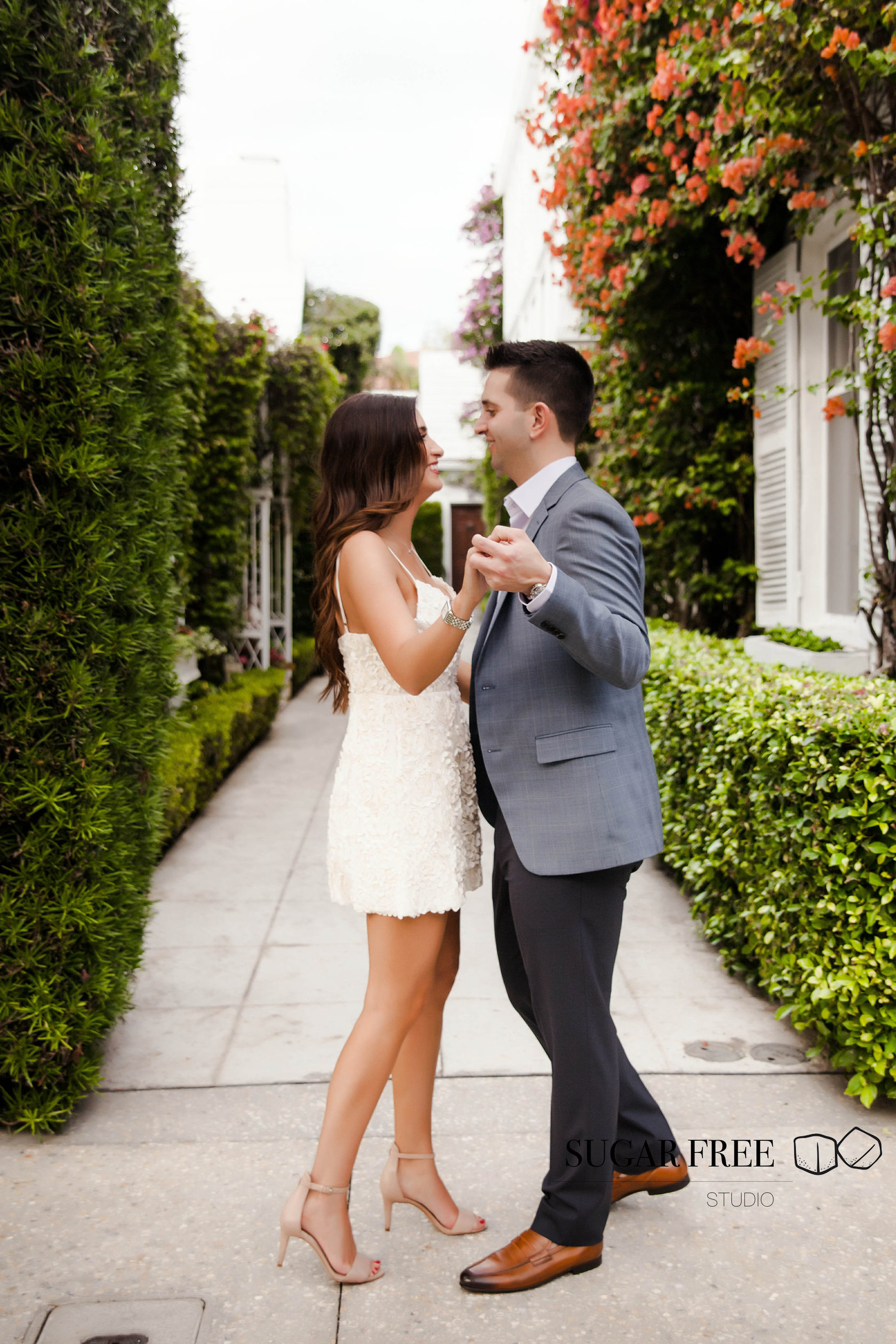 Inspired by the natural tropical scenery of Florida, Gia and Vincent decided to their engagement session in Palm Beach. They have flown from the city of Philadelphia in order to take a walk across Worth Avenue to enjoy it's classy Mediterranean architecture and sneak for a kiss to a cute and full of bougainvillea courtyards. Isn't it one of the best locations for a photoshoot?