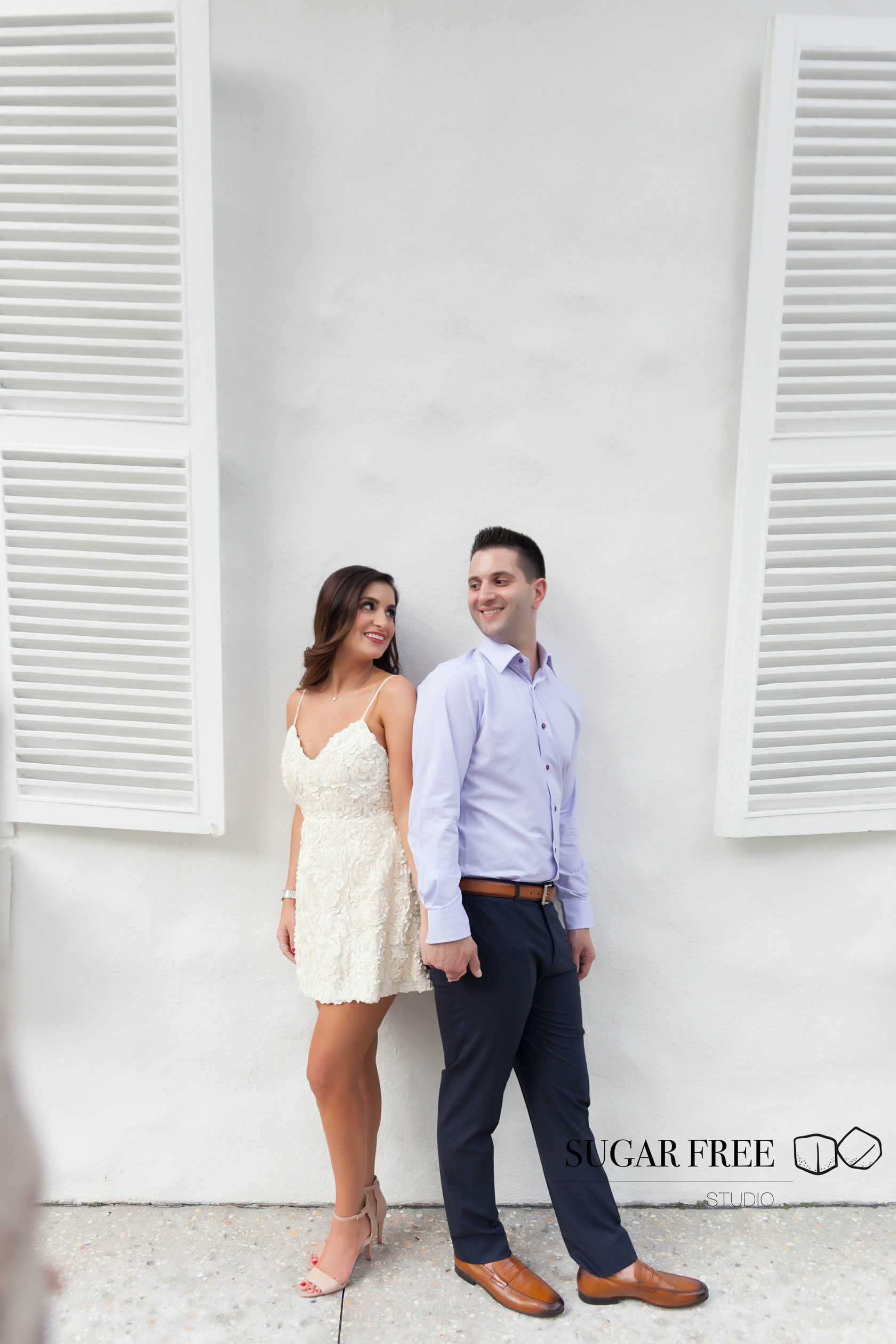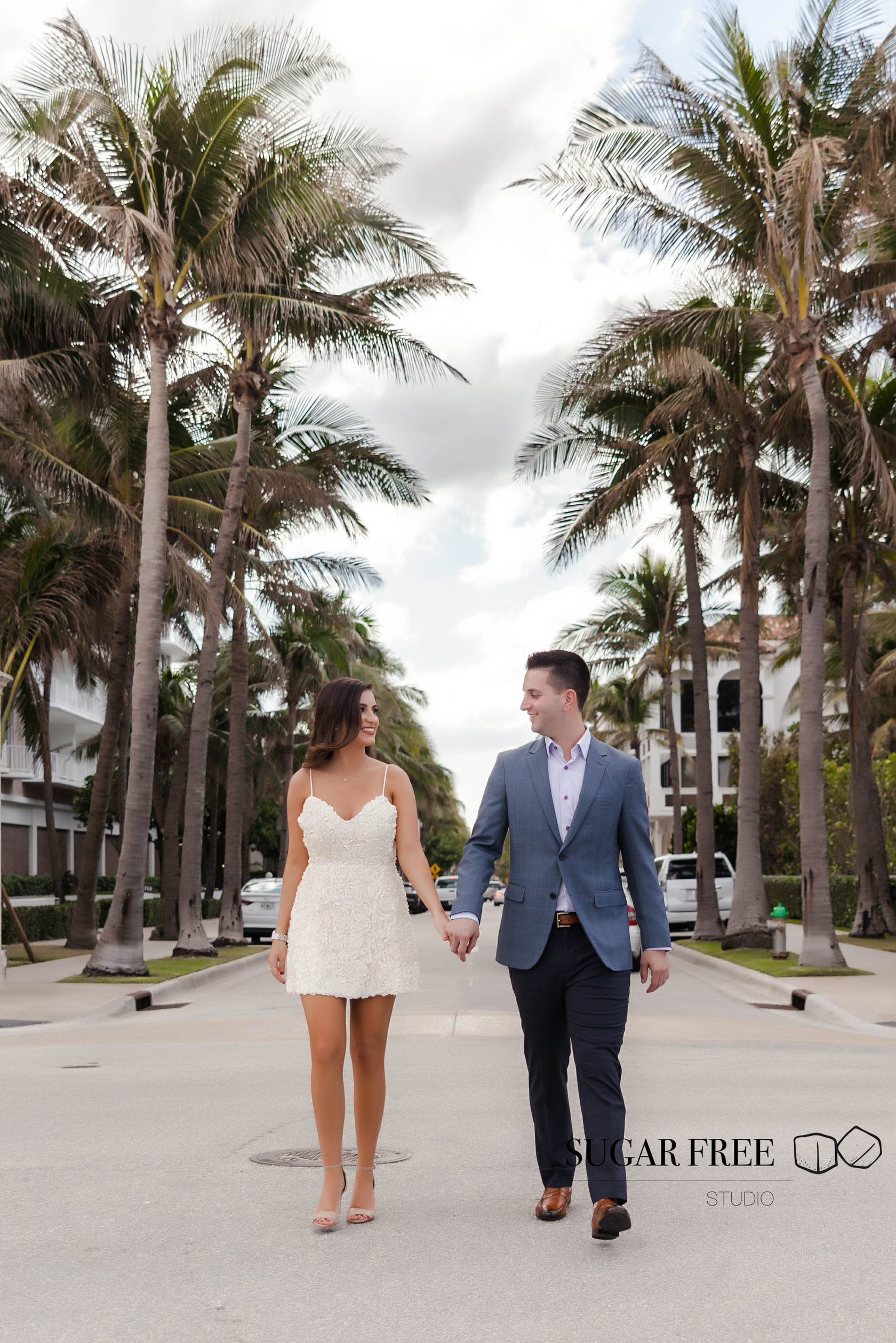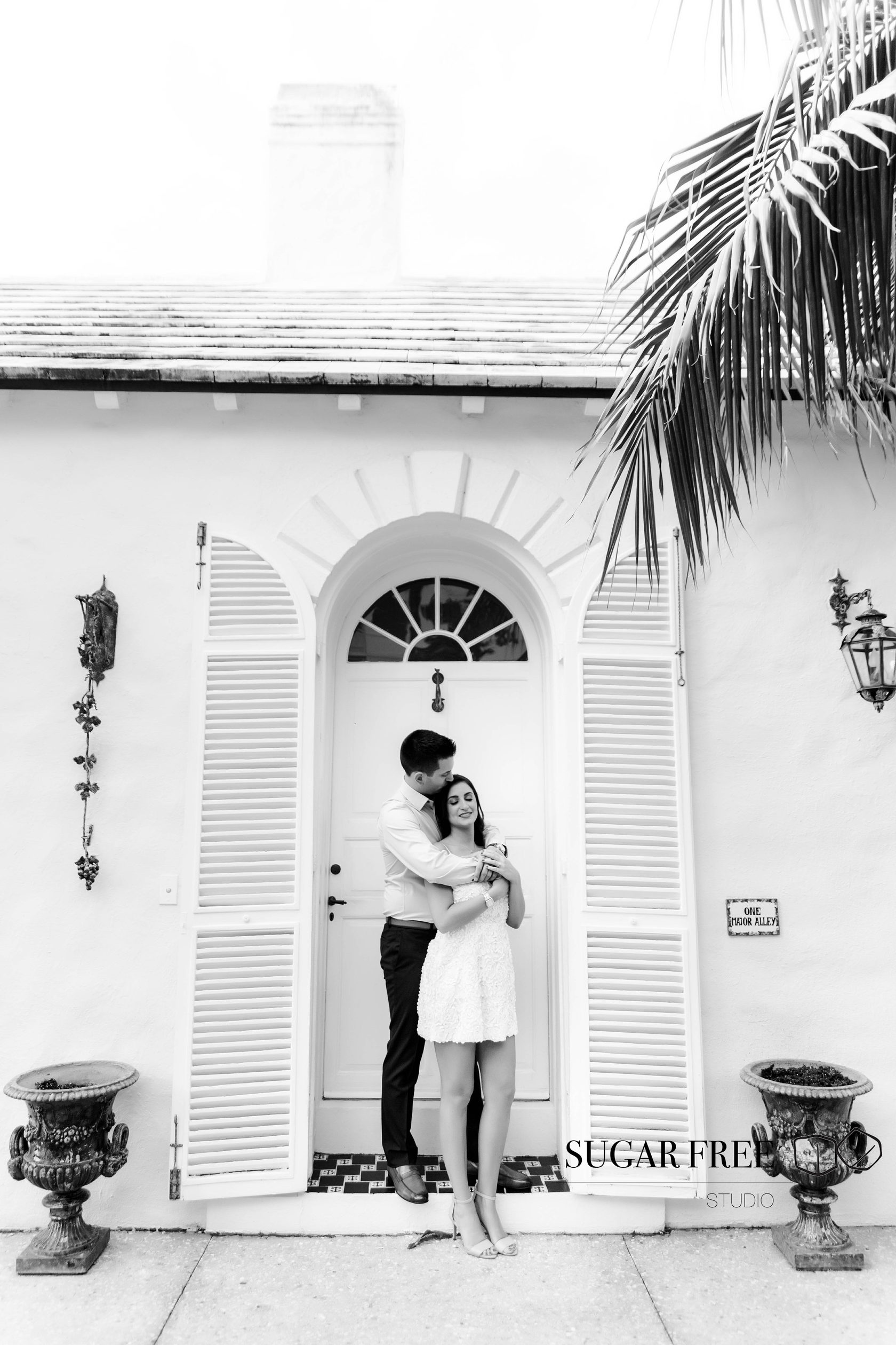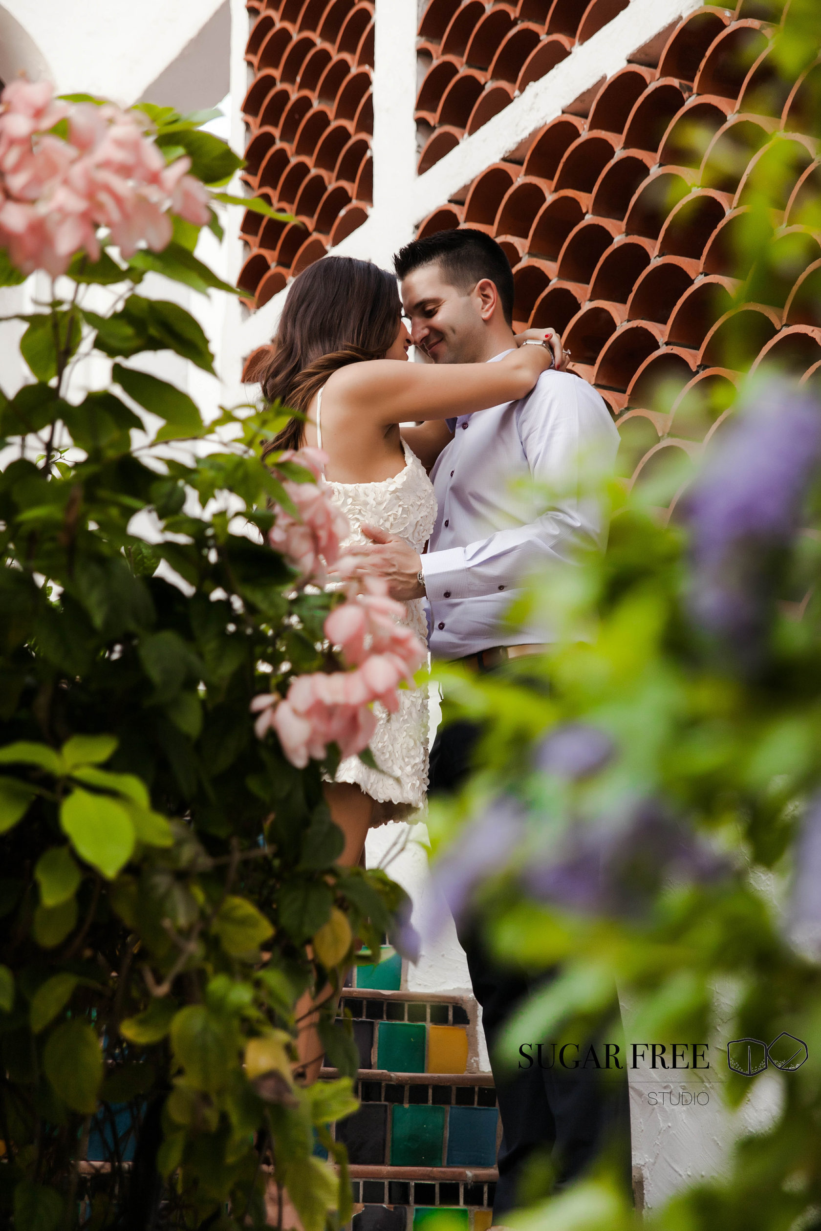 Inspired by the natural tropical scenery of Florida, Gia and Vincent decided to their engagement session in Palm Beach. They have flown from the city of Philadelphia in order to take a walk across Worth Avenue to enjoy it's classy Mediterranean architecture and sneak for a kiss to a cute and full of bougainvillea courtyards. Isn't it one of the best locations for a photoshoot?