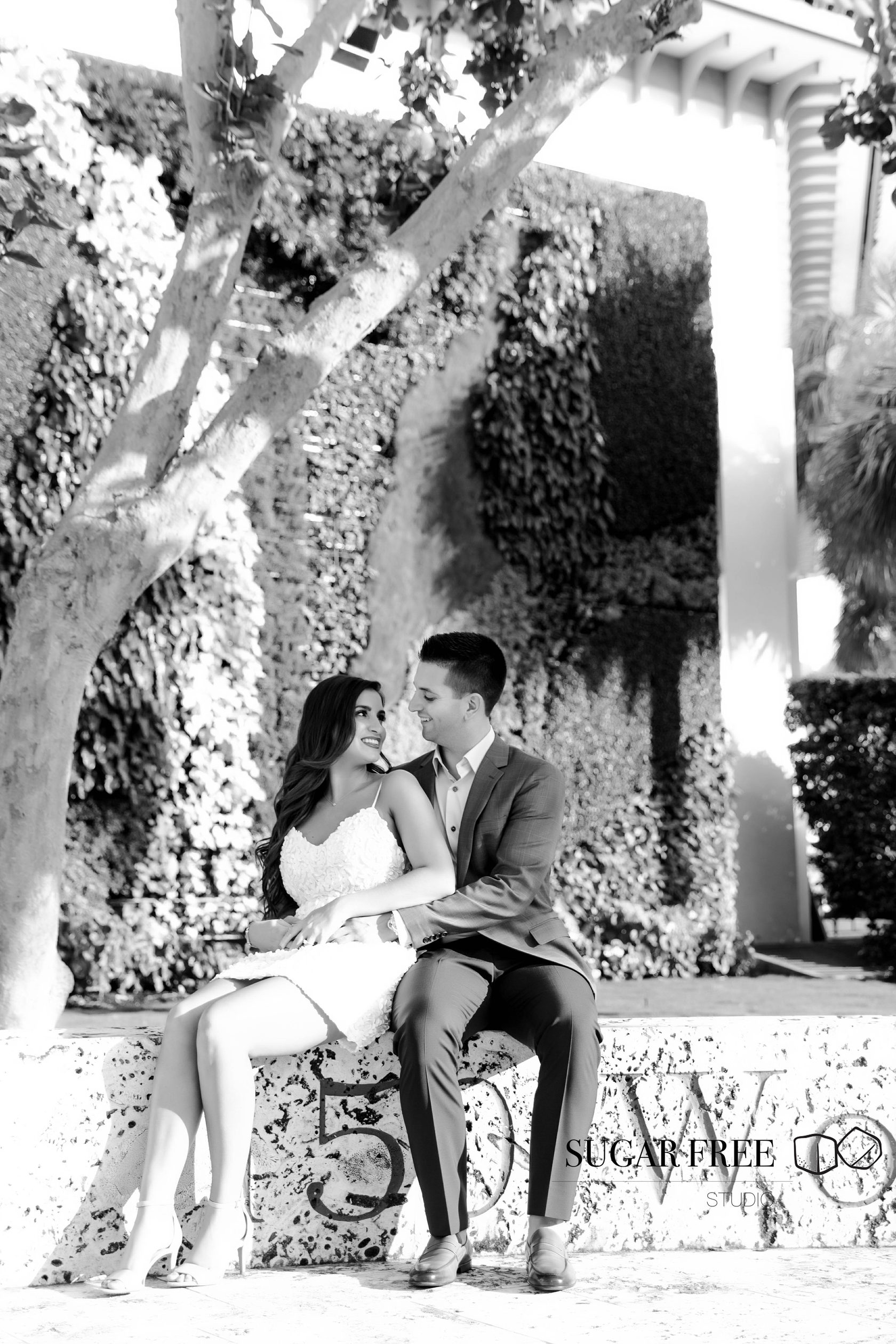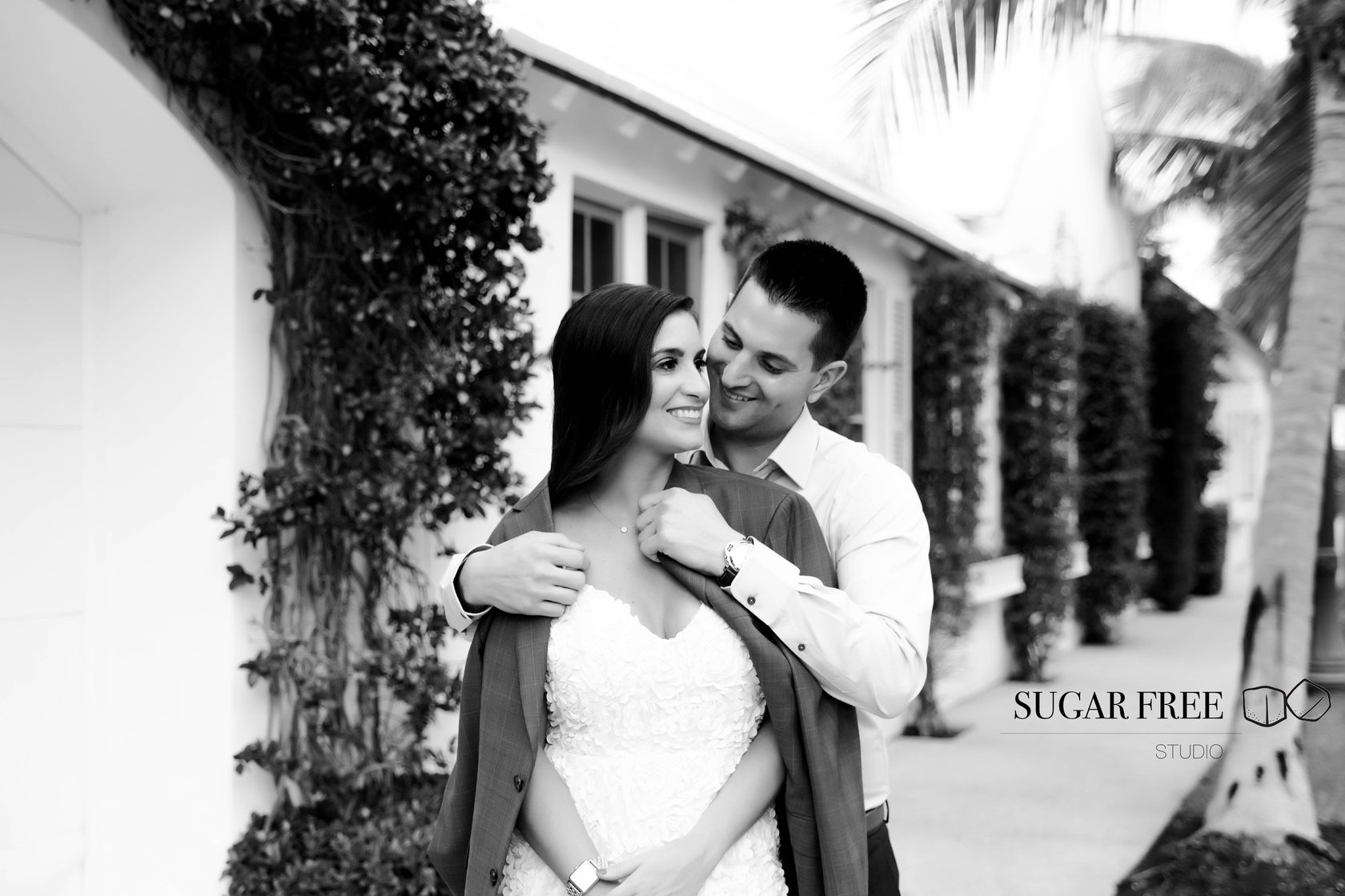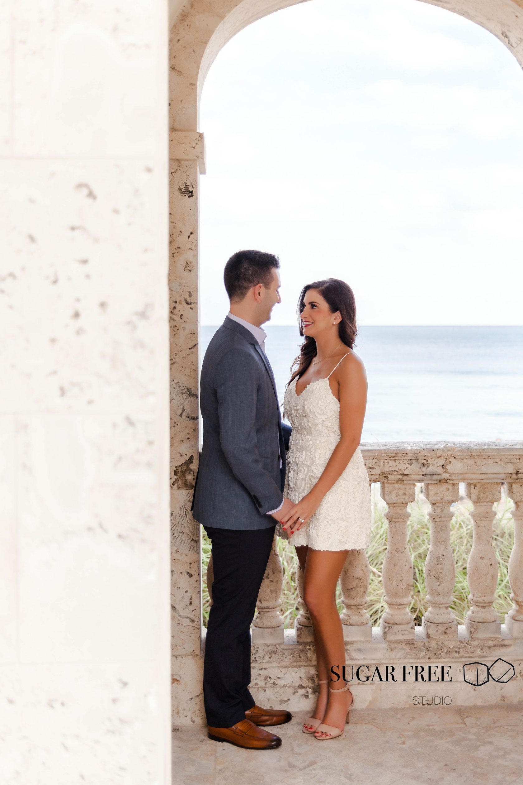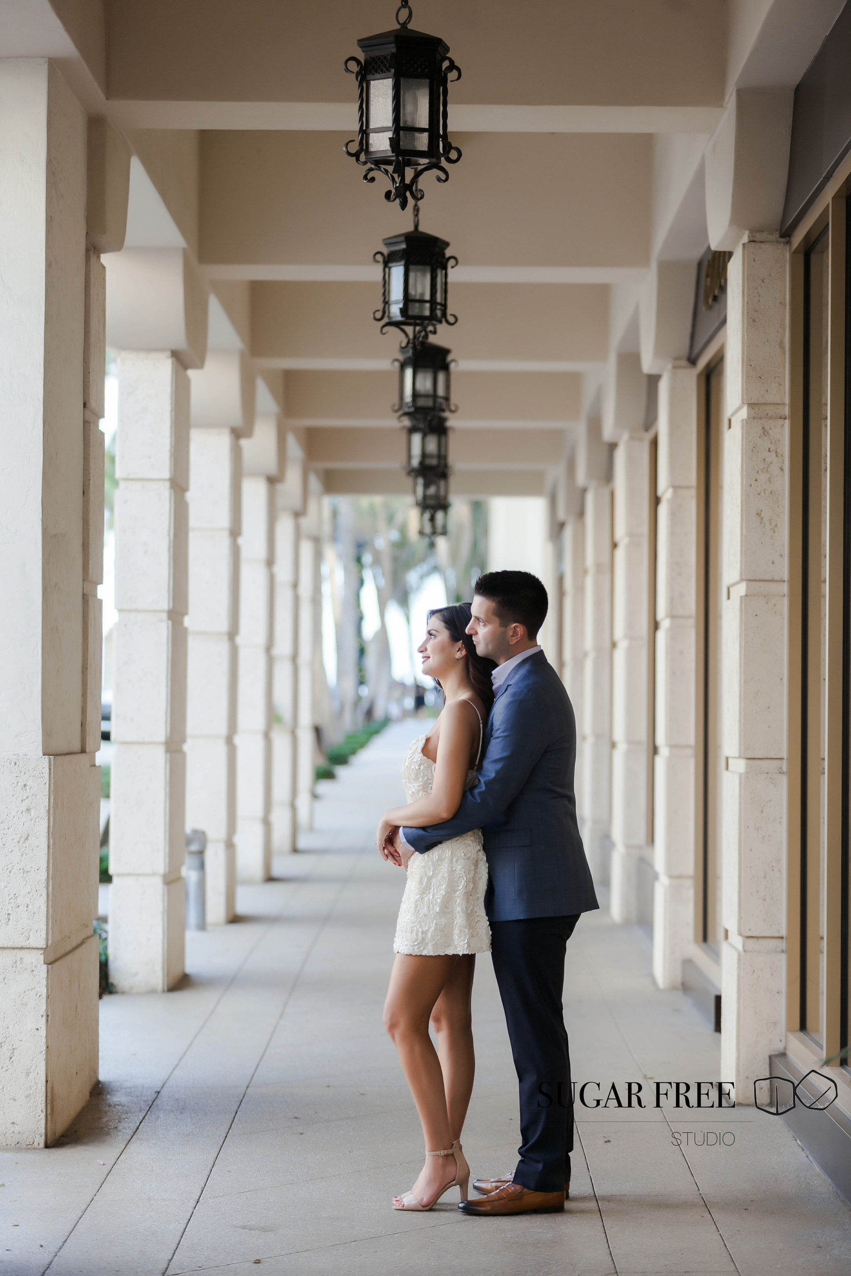 Inspired by the natural tropical scenery of Florida, Gia and Vincent decided to their engagement session in Palm Beach. They have flown from the city of Philadelphia in order to take a walk across Worth Avenue to enjoy it's classy Mediterranean architecture and sneak for a kiss to a cute and full of bougainvillea courtyards. Isn't it one of the best locations for a photoshoot?