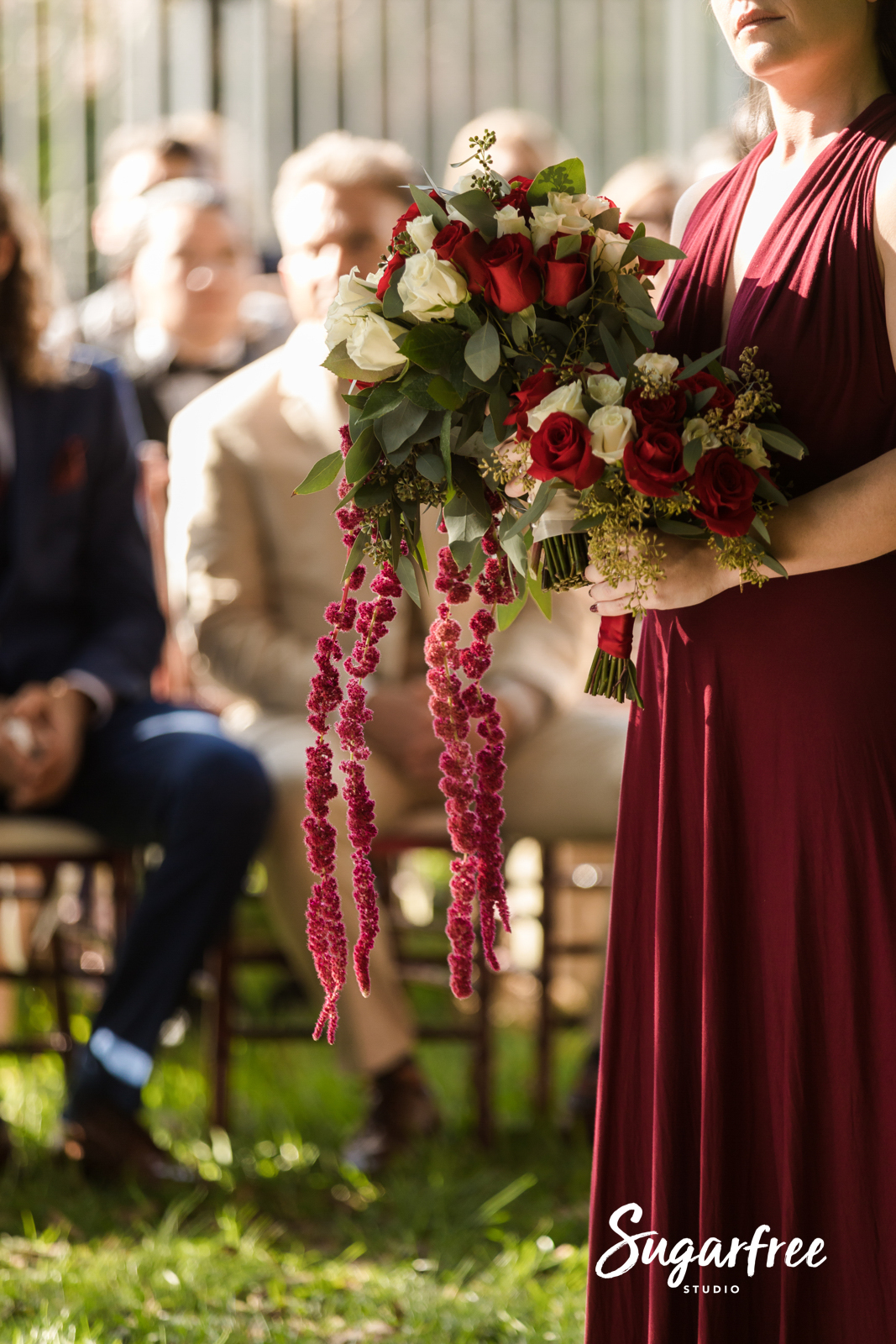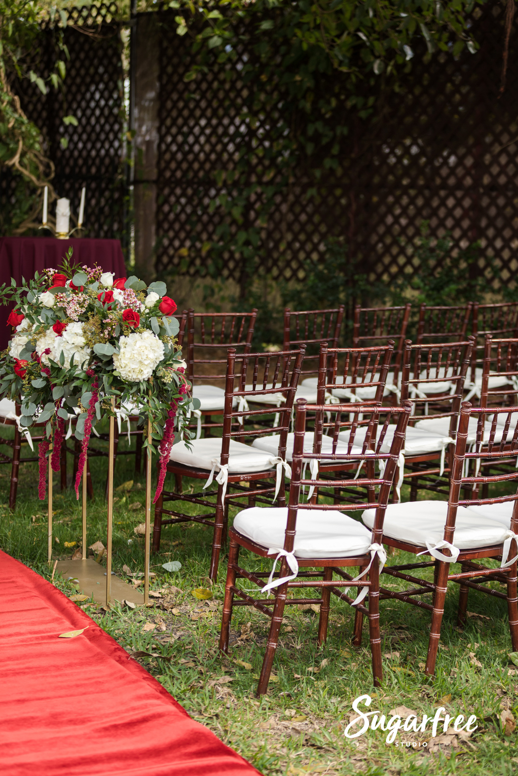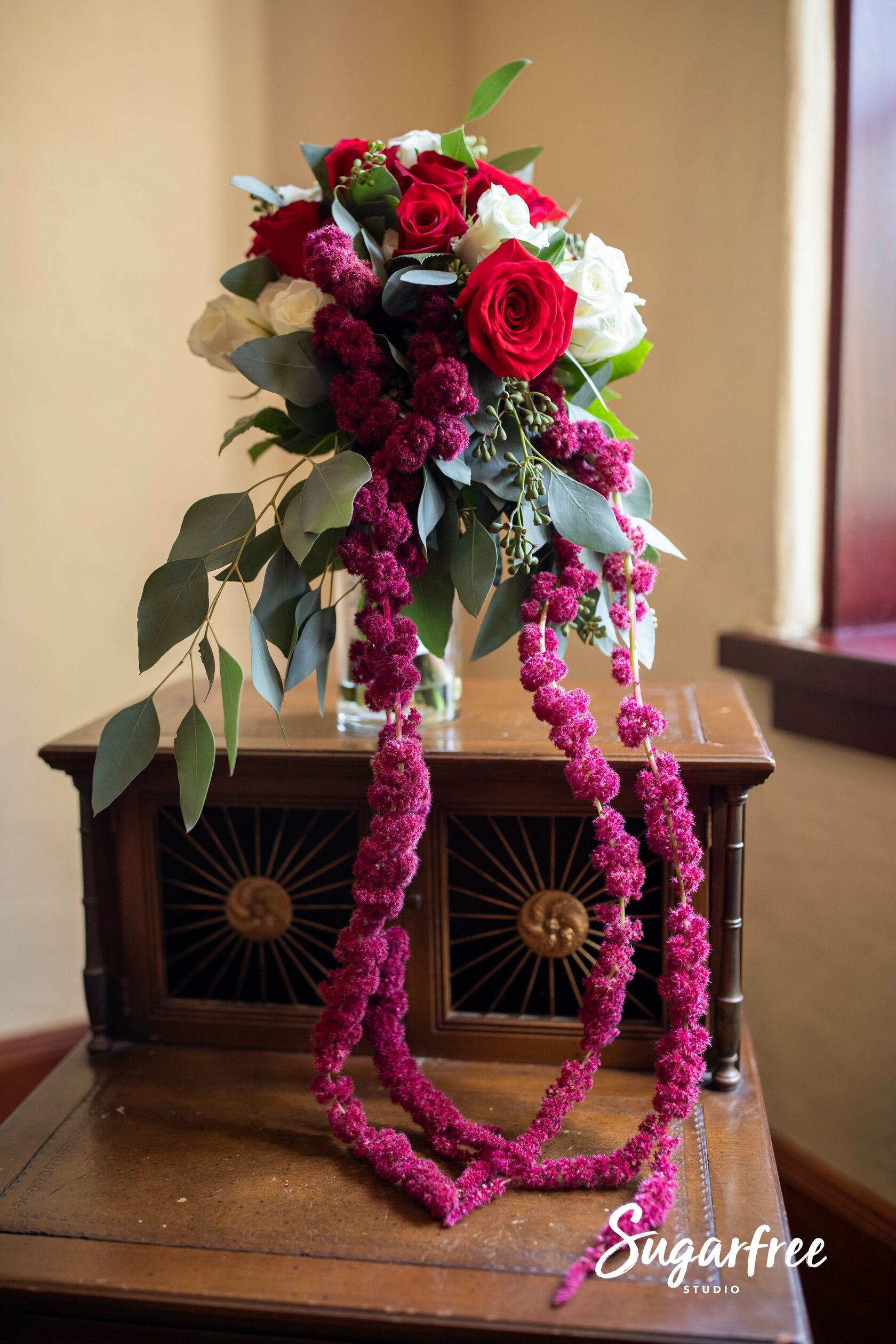 Curtiss Mansion. Their wedding was dripping with red, maroon and cream florals (literally) and a ton of greenery to boot. Everyone had a blast celebrating this pair and it's apparent on each person's face - especially the couple of honor.