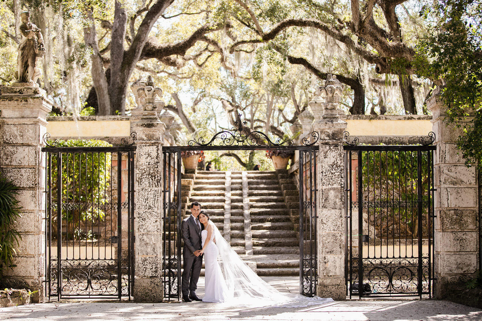 Villa Vizcaya is located in the heart of Miami and now is called Vizcaya Museum and Garden. It is one of the best locations for a wedding, an engagement session or an elopement in Miami. Once decided to have a wedding at Vizcaya, the couple will long enjoy their wedding photos and videos. Examples of beautiful works can be see in "the Vizcaya wedding" and "the Vizcaya engagement" sections of our blog. Here are some of our favorite images from Marcela and Farid's elopement in Miami. Take a look and be inspired by this beauty!