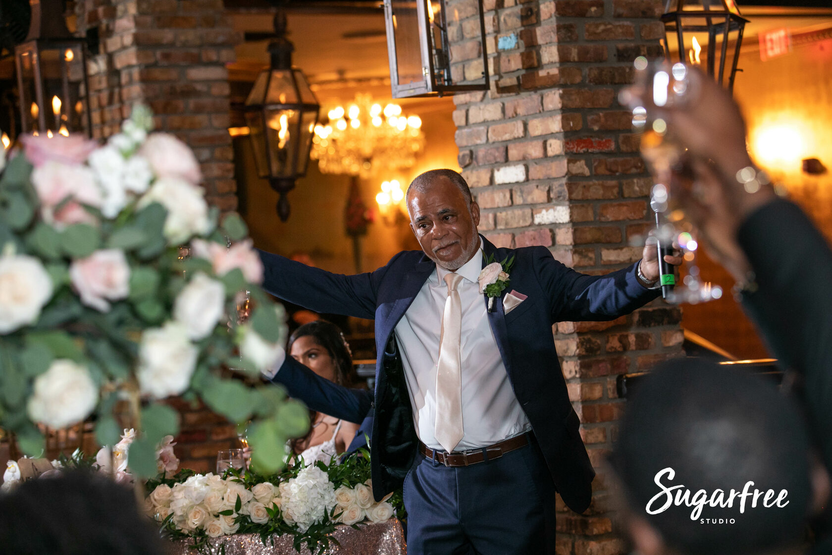 The Cruz Building and knew that it's unique style was going to be perfect location for their wedding. The bride opted for a dusty rose, nude and navy color palette to complement their beautiful backdrop. Every detail was chic and the epitome of class - exactly how she envisioned. From the gorgeous first look, to the way Cameron watched Renee walk down the staircase and every moment in between was pure perfection.